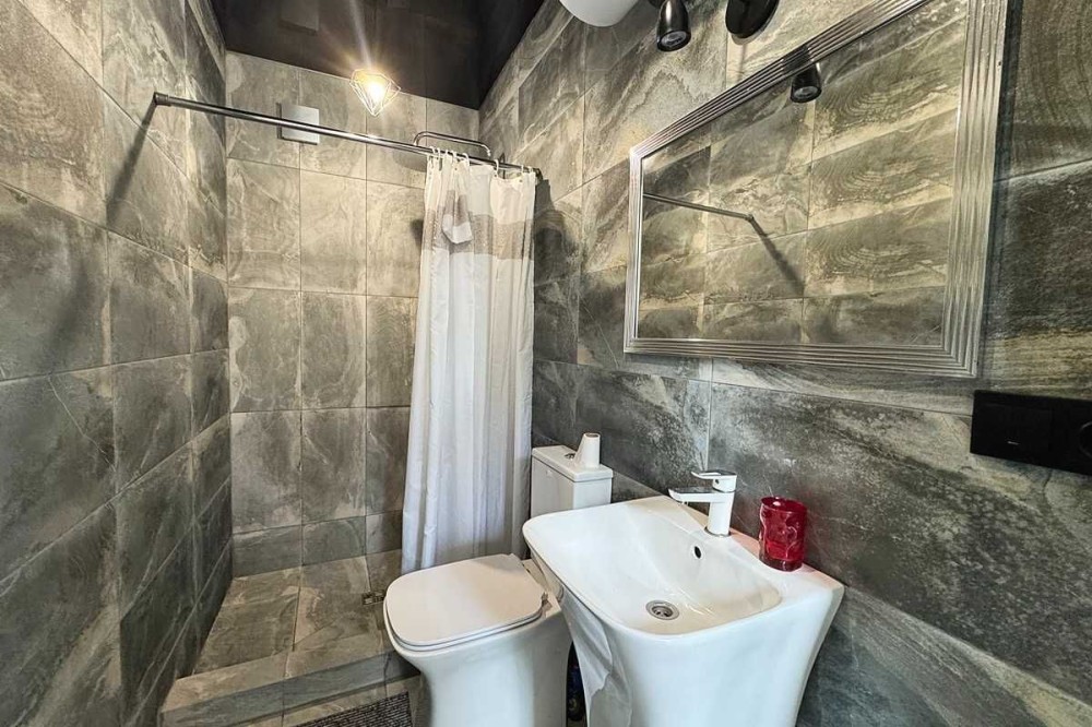 Гостьовий, автономний будинок площею 44 кв.м, побудований з газоблоку. По плануванню має загальну кімнату для відпочинку, санвузол та спальню з виходом до зони джакузі. До джакузі виведені всі комунікації та в майбутньому можливо дозавершити під своє бачення проекту.