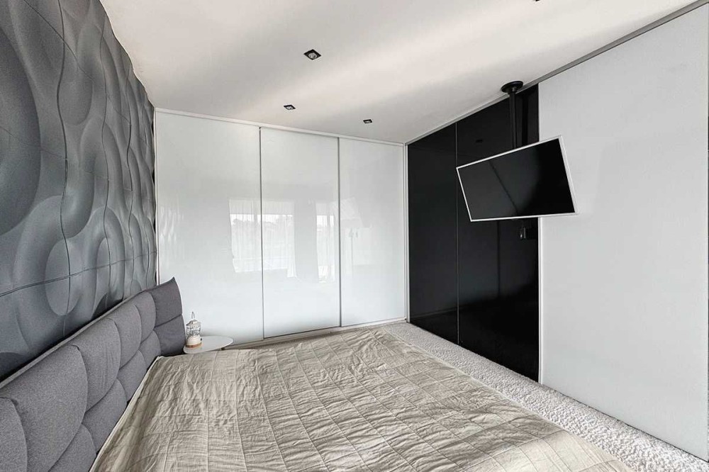 -на другому рівні розташована простора кімната з гардеробною та власним санвузлом.