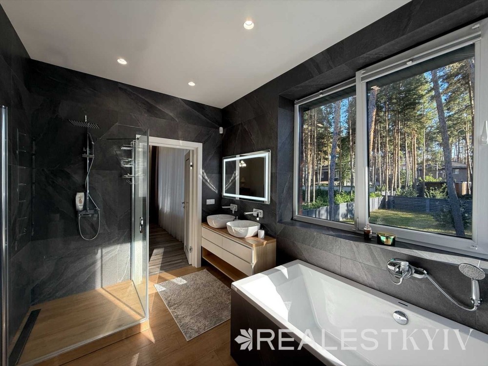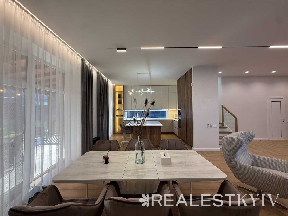 Продається затишний двоповерховий будинок серед соснового лісу в КМ Нова Ходосівка, Обухівський район. Будинок виконаний із якісних матеріалів, має дизайнерський ремонт, повністю мебльований та обладнаний сучасною технікою. Просторий, світлий інтер’єр з каміном у вітальні створює атмосферу гармонії та затишку. На ділянці збережений природний ліс із деревами без обробки, що створює автентичну атмосферу та виглядає надзвичайно гарно.