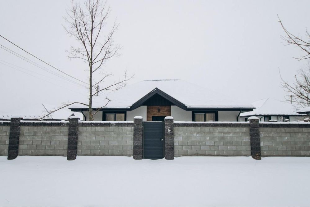 Доглянута ділянка: газон, автоматичні ворота, 2 паркомісця, нічне освітлення.