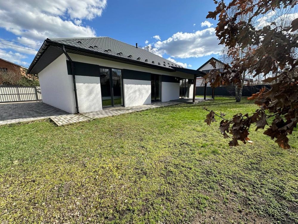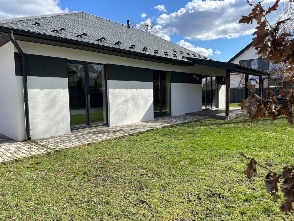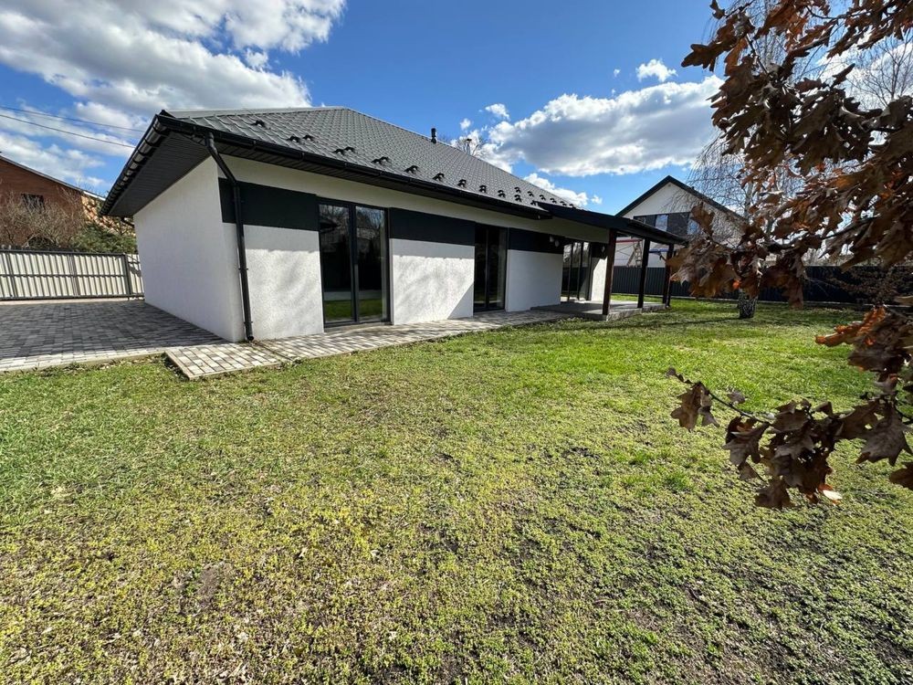 Будинок з сучасним плануванням - простора кухня-вітальня, три кімнати та санвузол. Ділянка вирівняна та підготовлена під ландшафтний дизайн.