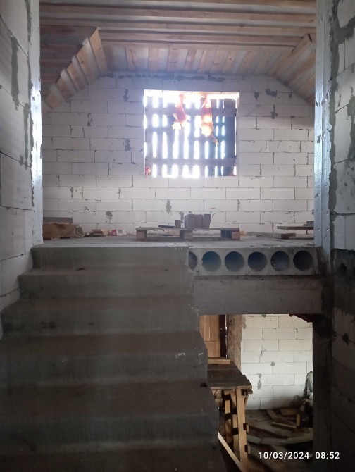 Надійність: Будова з бетонним силовим каркасом та залізобетонним перекриттям. Це не просто стіни, а міцна конструкція з готовими бетонними сходами на другий поверх.