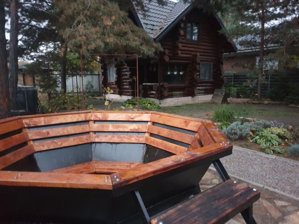 – Велика тераса: з зоною відпочинку, лежаками та красивим мангалом для приготування м’яса та затишного проведення часу навколо вогнища.