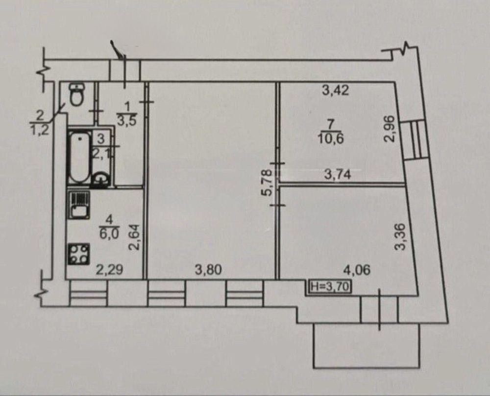 Висота стель — 3,7 м