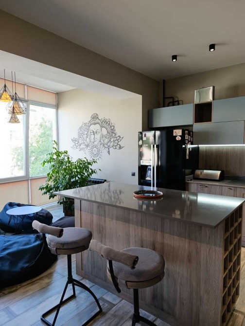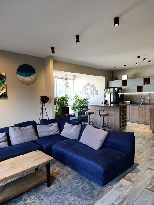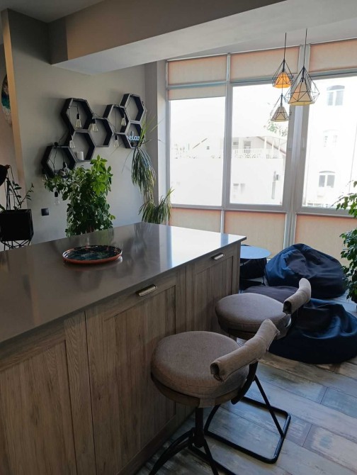 Здається вперше стильна квартира з дизайнерським ремонтом. Загальна площа 128 кв.м. Велика спальня з лоджією та зоною відпочинку, дитяча кімната з двоярусним ліжком та кухня - гостина, також з окремою зоною відпочинку. Две гардеробных Повністю укомплектована. Море в 5 хвилинах. Здається довгостроково. Без тварин. В будинку є підземний паркінг. Закритий охоронюваний двір.