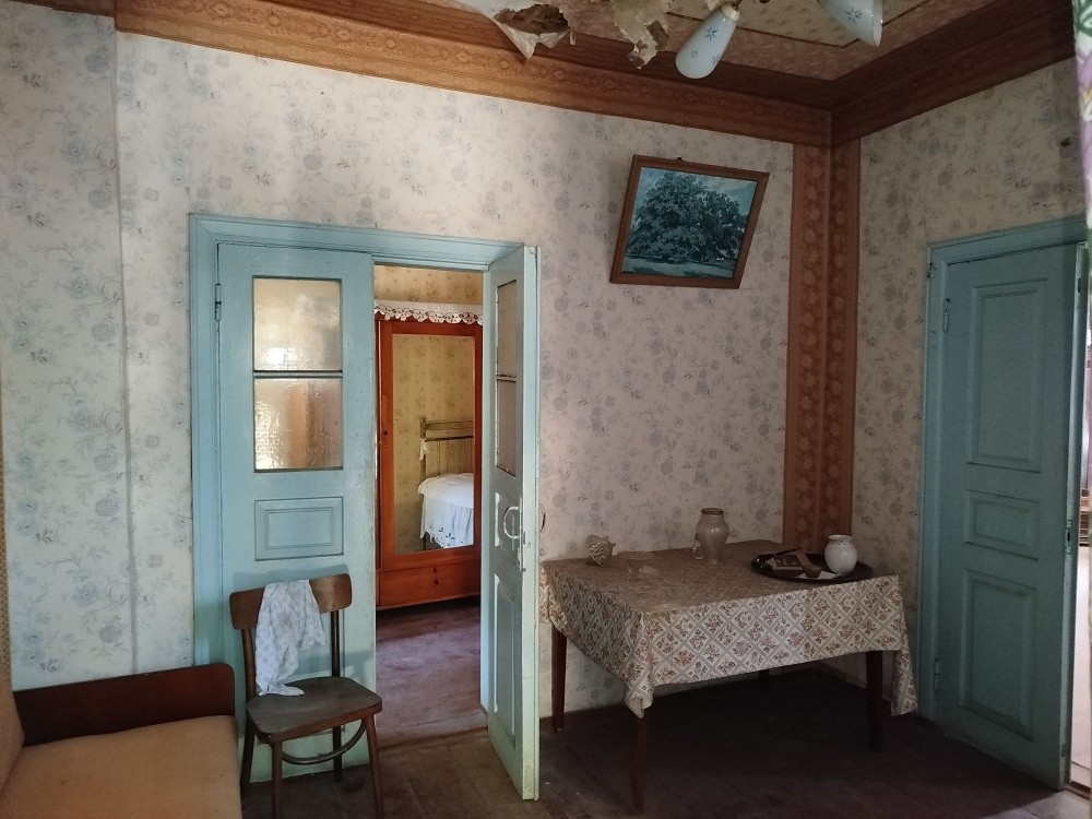 Загальна площа цієї частини 54.4 кв.м, житлова - 34.1 кв.м (дві кімнати площами 24.1 та 10.0 кв.м), кухня - 9.6 кв.м, є веранда та котельня.