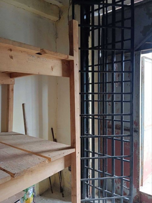 Має додатковий захист у вигляді металевої решітки. Усередині облаштовані дерев’яні стелажі, тому гараж чудово підходить не лише для автомобіля, а й як складське приміщення.