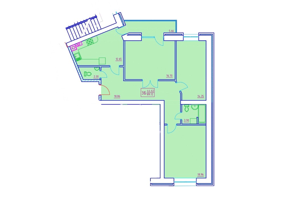• Загальна площа 89.12 м2
