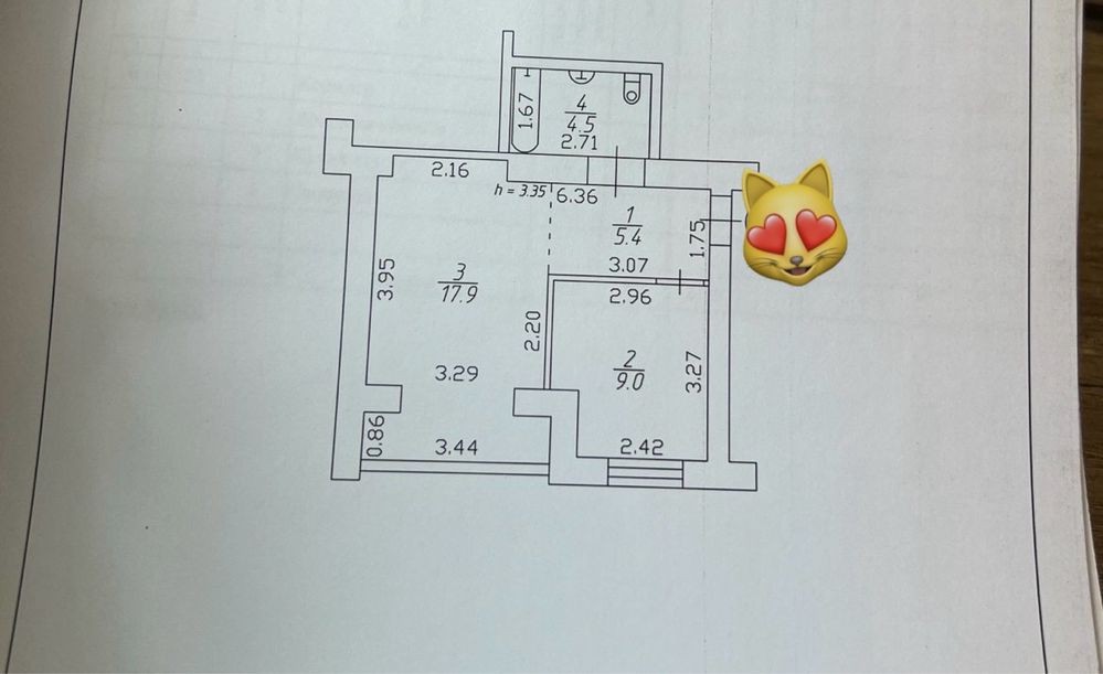 - Висота стелі 3.3 метри.
