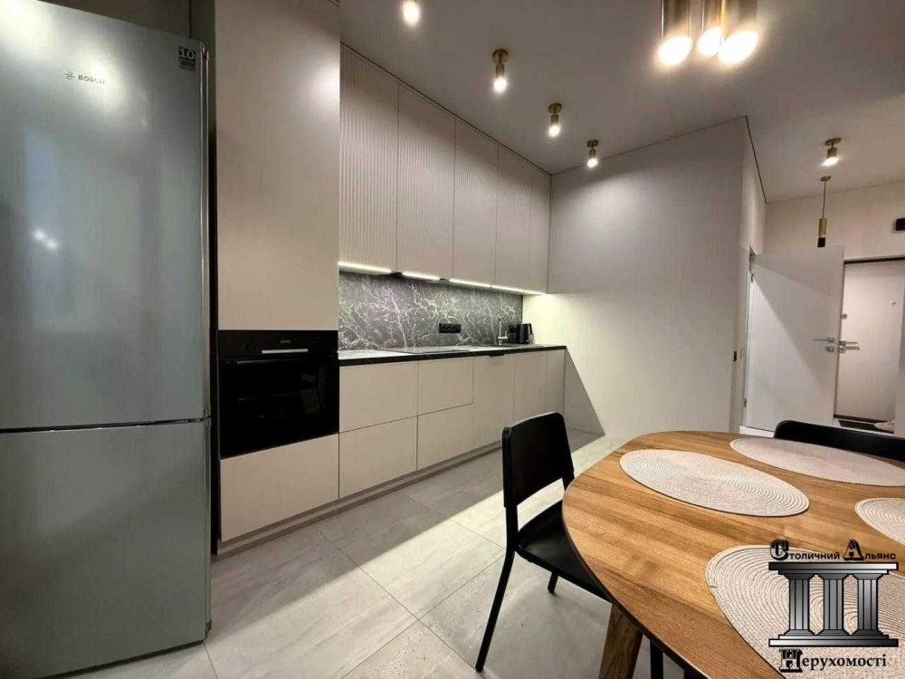 Продам сучасну однокімнатну квартиру 52,3 м2 в новому ЖК «Мanhattan City», за адресою: Берестейський проспект, 11. Квартира розташована на 23-му поверсі 36-ти поверхового будинку. Повністю мебльована та обладнана усією необхідною технікою. Усі матеріали, сантехніка та техніка якісна і дорога. Планування: спальня з шафами, зоною відпочинку, кондиціонером та телевізором; окрема гардеробна кімната; вбудована кухня: холодильник, посудомийна машина, духова шафа, варильна поверхня; засклений балкон; суміжна ванна кімната: душова кабіна, туалет, бойлер на 80 л, пральна машина, електрична сушарка для білизни. Оптоволоконний інтернет. Тепла підлога: кухня, ванна кімната.