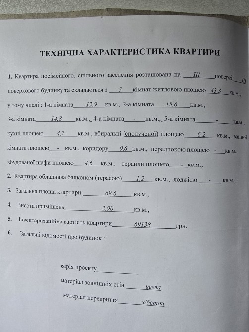 • Загальна площа 69.6 м2