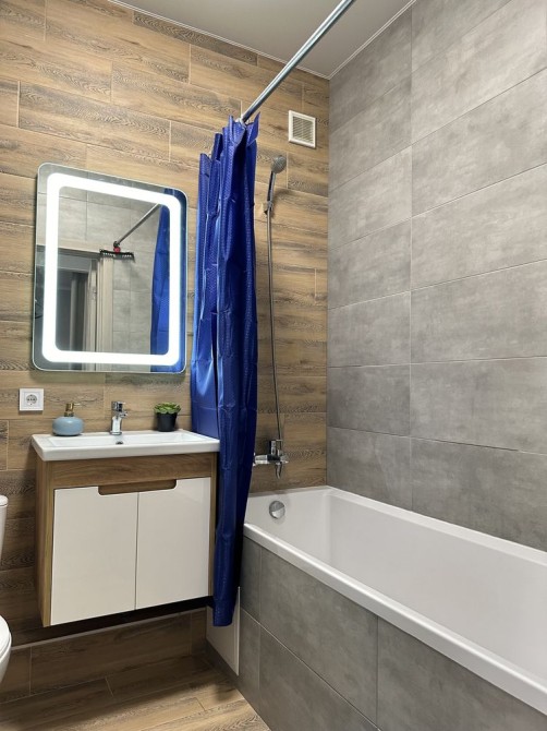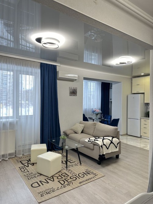 Квартира- студія 55м ( зонована під кухню , столову, зону ТВ, спальню) , суміжний санвузол з повноцінною ванною 170см , великий коридор ( розташований між 2х капітальних стін, де безпечно можна перечекати тривогу) , відкритий балкон ( вікна квартири виходять на річку Стрижень , весною та влітку балкон слугує чудовою локацією для чаювання )
