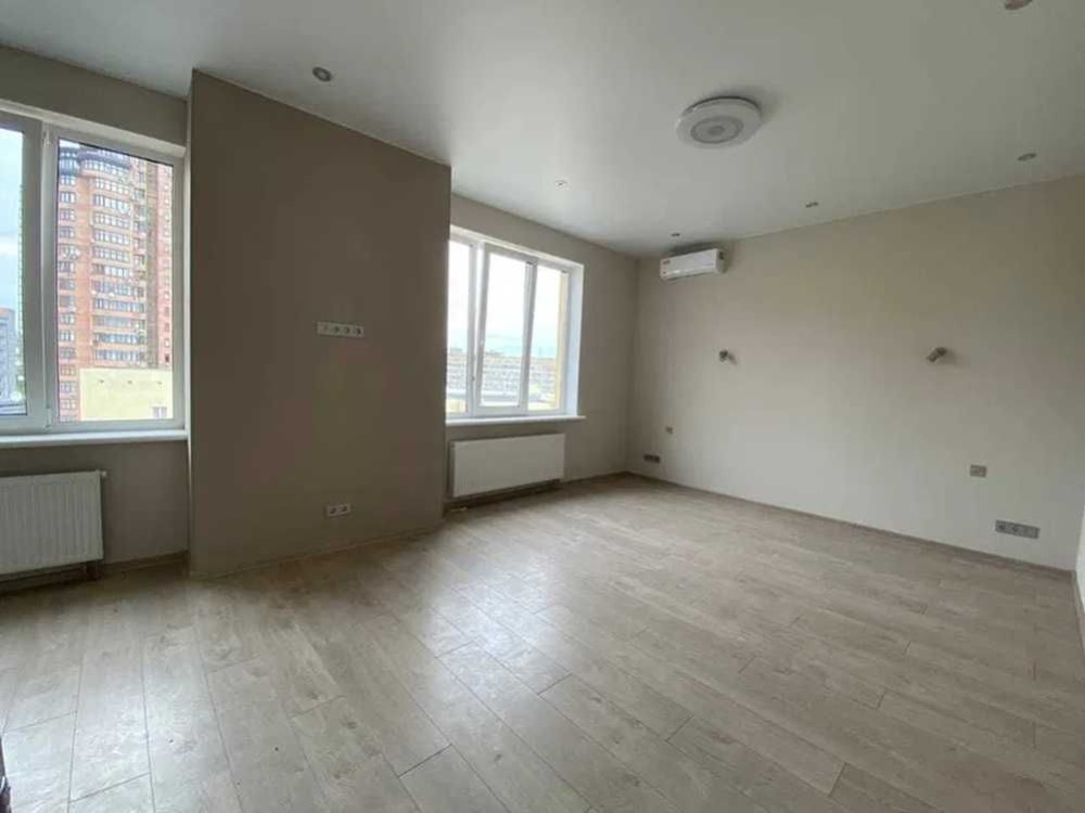 Площа 29,5 м². Світла квартира-студія з правильним плануванням, великі вікна, сучасний будинок 2016–2017 року. Доглянута вхідна група, охорона, підземний паркінг.