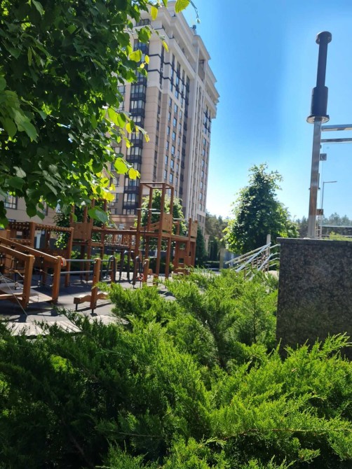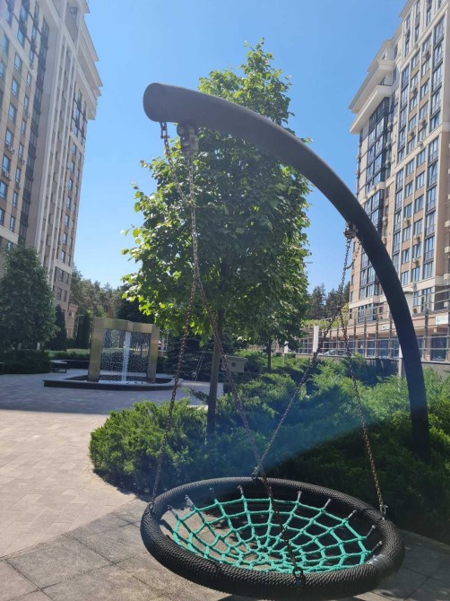 Тихий та спокійний двір з дитячим майданчиком.