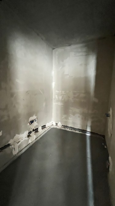 В квартирі зроблена гіпсова штукатурка стін, лазерна стяжка підлоги, розведена водяна тепла підлога.