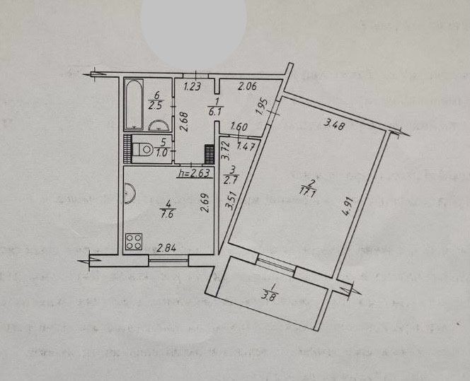 • Площа кухні 7.6 м2