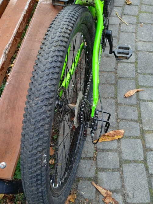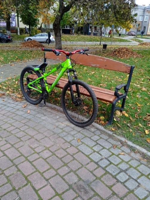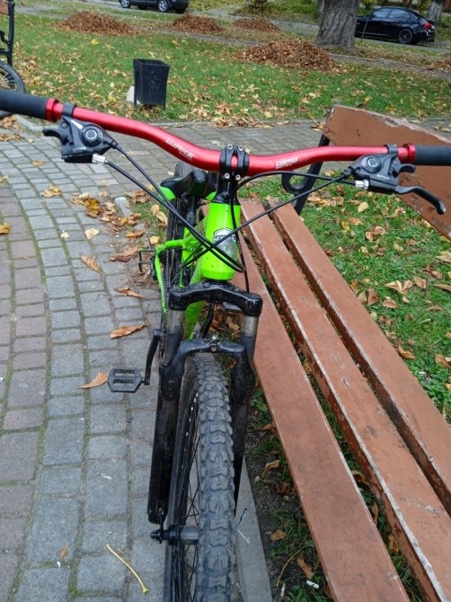 8 пердач,руль 780мм, мягка вилка,доволі легкий.