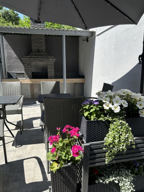 Частина приватного будинку на 1 поверсі, з окремим входом і автономна, сучасна і нова, з зоною відпочинку, мебльована. Перша здача. Є мангал.