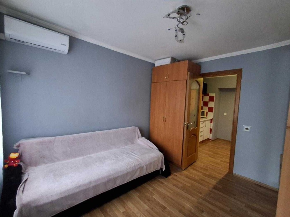 В кімнаті є розкладний диван, тумба.