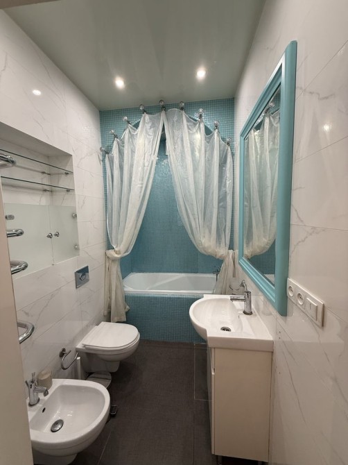 Дві ізольовані кімнати та одна прохідна. Є вся необхідна побутова техніка: пральна, сушильна та посудомийна машини, кондиціонери, меблі.