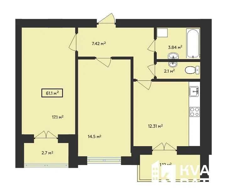• Загальна площа 61.1 м2