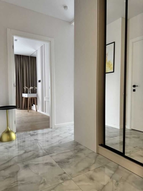 Житло має продумане планування: простора спальня поєднується з функціональною кухнею та затишною зоною відпочинку, де також облаштовано робоче місце. Санвузол обладнаний ванною, а у коридорі встановлена велика вбудована шафа, що забезпечує зручність у зберіганні речей.