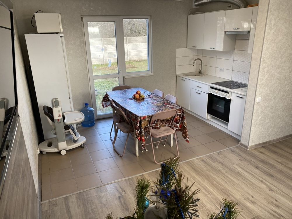 Будинок площею 72 кв м, камін, вихід на горище, 3 спальні, сходи, хол, кухня-студіас виходом на задній двір, з/в, комірка, підлога тепла в кухні та с/в, будинок за канадською технологією, утеплення, гідроізоляція , провідний інтернет.