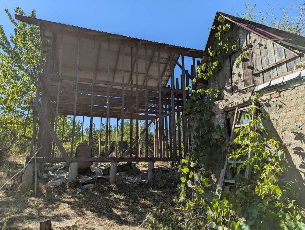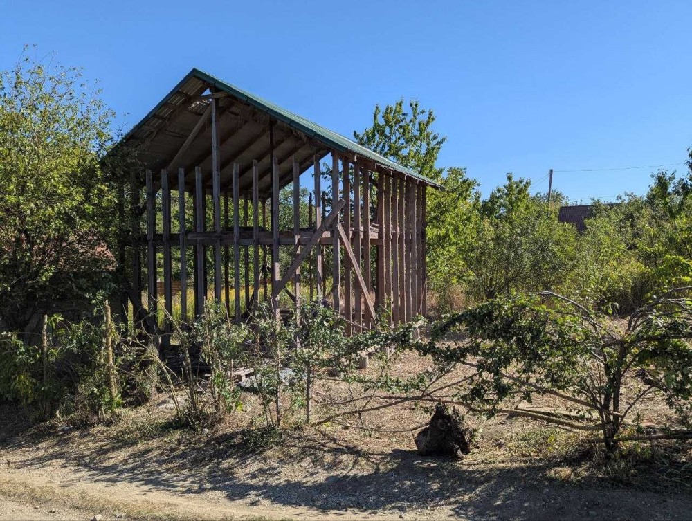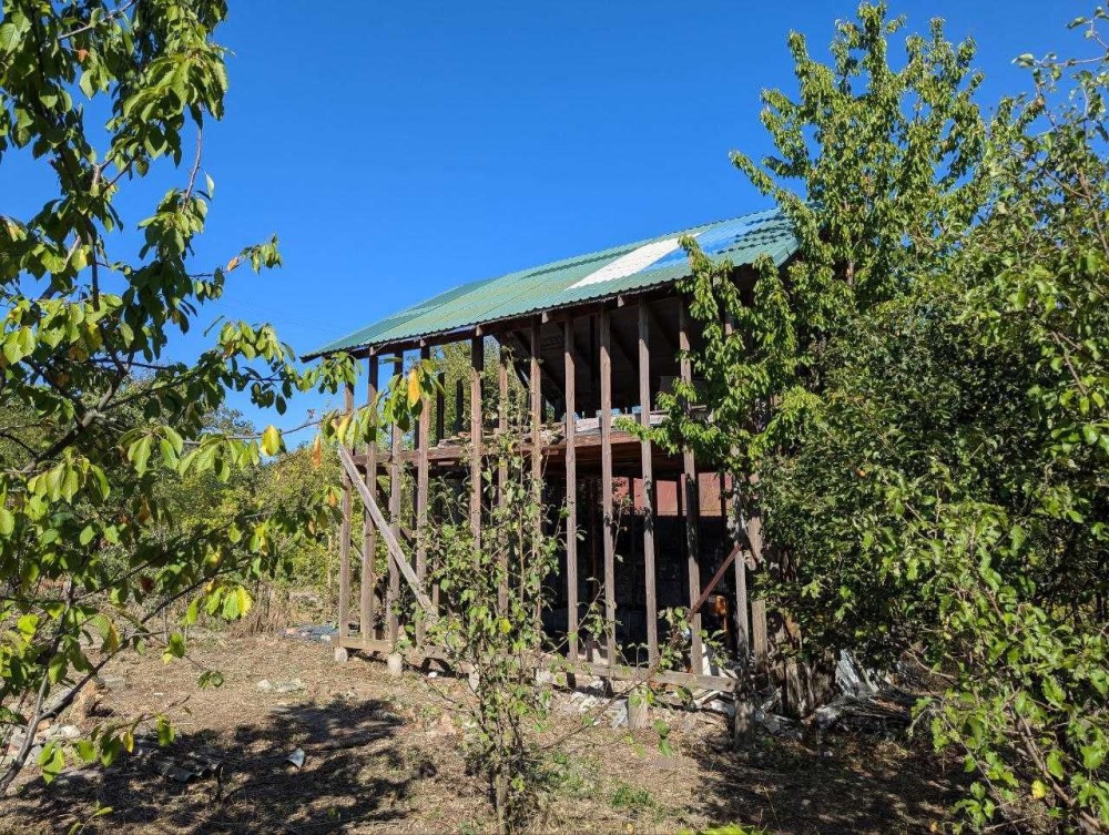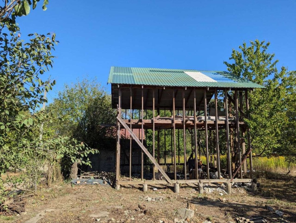 1. Каркасний будинок на сваях 6.8Х6.8 два поверхи, накритий дахом із профнастилу. У будинок заведено міську воду. До будинку йдуть повний комплект металопластикових вікон та вхідні дерев'яні двері (не встановлені), інші будматеріали.