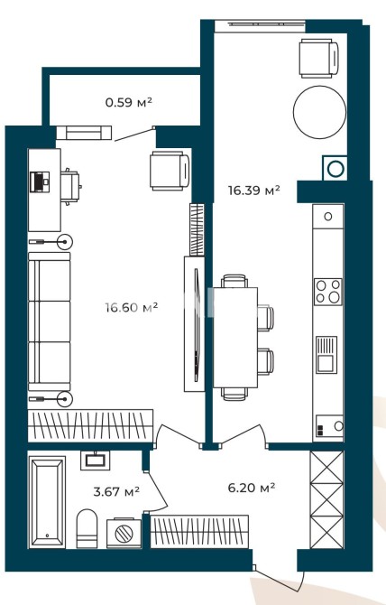 • Загальна площа 43.5 м2