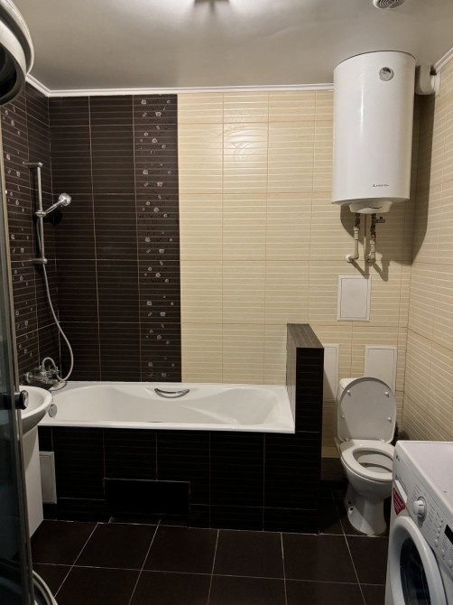 Зроблена тепла підлога є бойлер , душева кабіна та ванна.