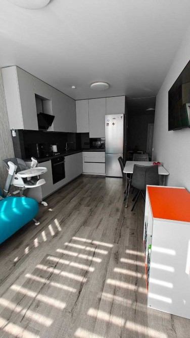 Простора кухня-студія, яка зручно поєднується з вітальнею, що дозволяє зібрати всю родину чи гостей.