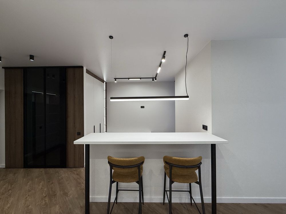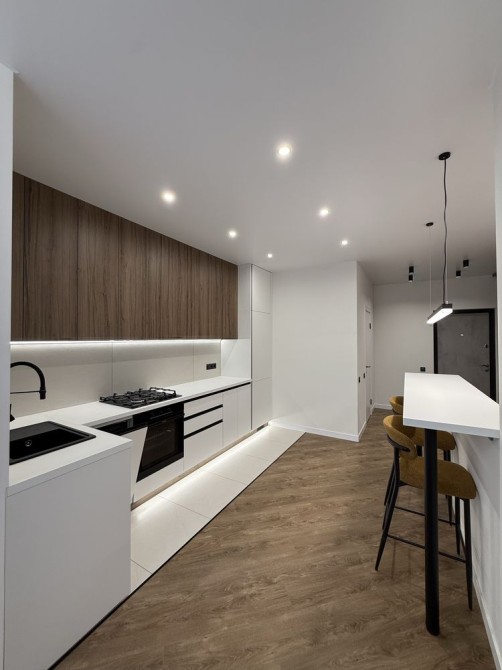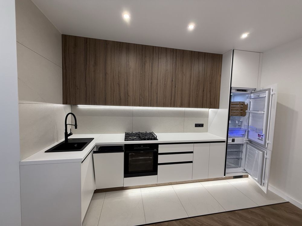 Деталі ремонтних робіт: якісне оздоблення стін, натяжна стеля, підігрів підлоги в коридорі, санвузлі, та в кухні, прально машинка, підвісний унітаз. У кухні: вбудований холодильник, духова шафа, посудомийна машина, мікрохвильова піч