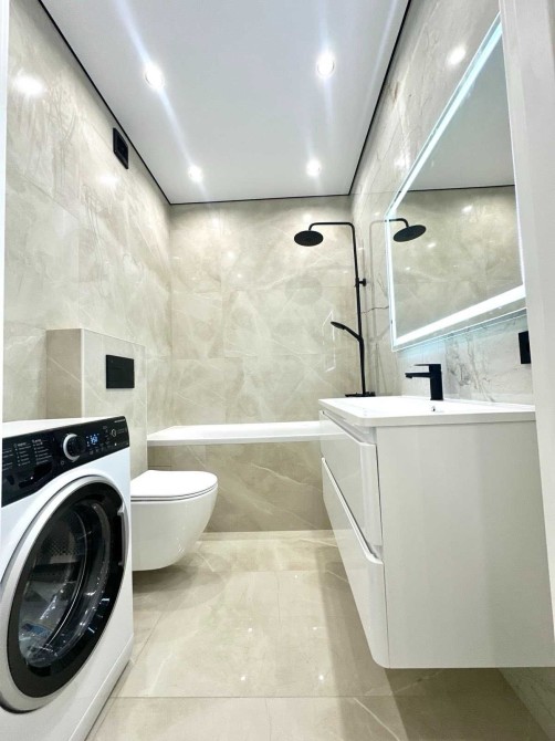 Дизайнерський ремонт у світлих, нейтральних тонах — усе виглядає сучасно, просторо й затишно.
