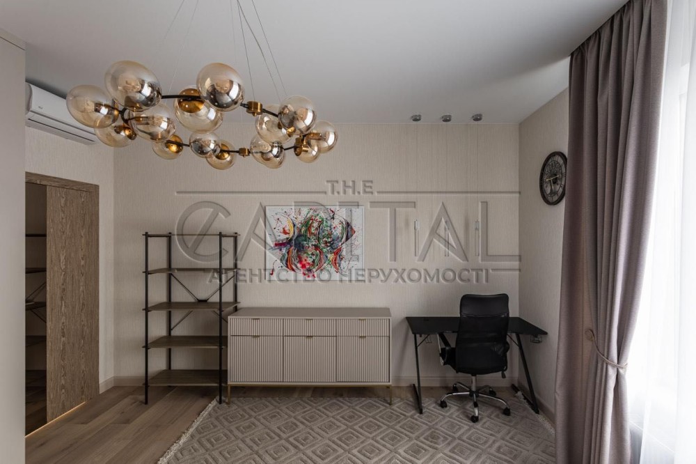 Усього будинок має 4 спальні, кабінет, 5 санвузлів та кілька повноцінних гардеробних приміщень.