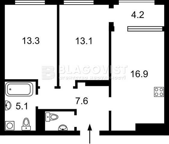 • Площа кухні 16.9 м2