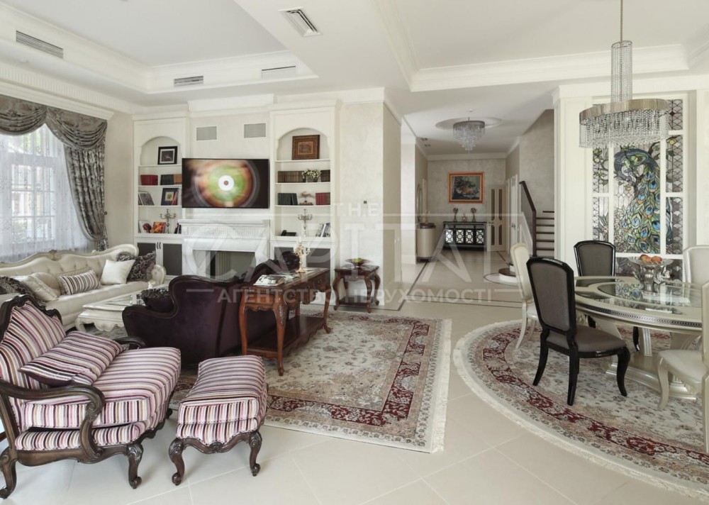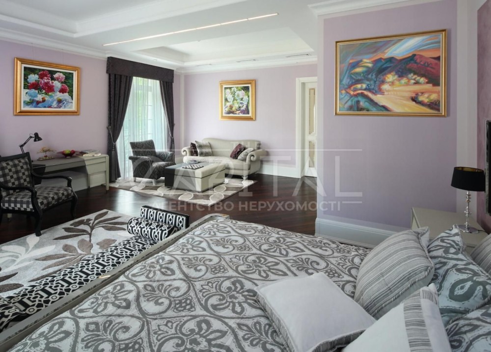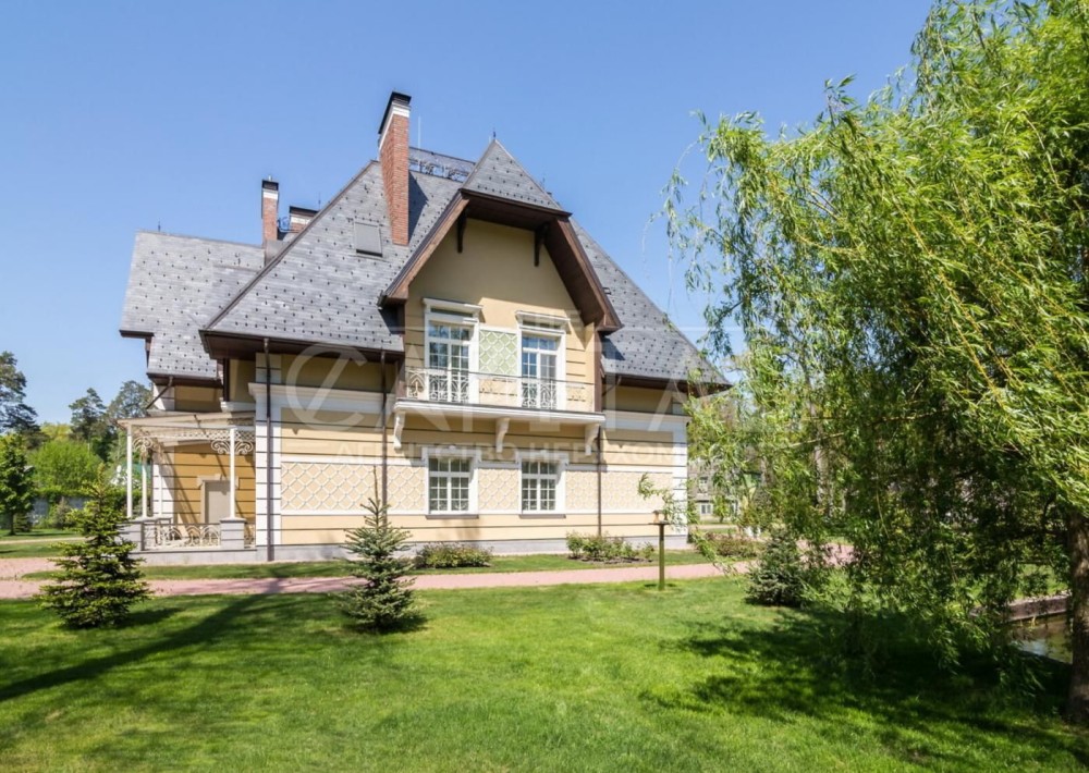 Елітний маєток De Luxe у французькому стиліЛокація: Ворзель, Київська область, вул. Соснова 73Площа будинку: 755 м² Ділянка: 0,71 гаАтмосфераЦей унікальний маєток – справжня перлина французької архітектури в оточенні вікових сосен та чистого повітря Ворзеля. Локація поєднує тишу та приватність заміського життя з близькістю до Києва – лише 15 хвилин комфортної поїздки Житомирською трасою.На території – каскад озер із містками, ландшафтний дизайн у європейському стилі, прогулянкові доріжки з натурального каменю та власна зона відпочинку біля води. Архітектура та інтер’єрБудинок виконаний у класичному французькому стилі De Luxe: • 3 поверхи з ліфтом, панорамні вікна, високі стелі. • Авторський дизайн-проєкт, ручний декор, меблі Michael Amini (США). • Мармуровий вхід, художні вітражі, розкішний хол з люстрою-каскадом. • Камінна зала — серце дому, ідеальне місце для родинних вечорів. • Сучасна кухня-столова (Miele, Bosch, Siemens) з мармуровим островом та виходом на терасу. • Кабінет у класичному англійському стилі з каміном і власним санвузлом. • SPA-зона для релаксу. ПлануванняДругий поверх: • Майстер-спальня в стилі французької провінції XX ст., гардеробна, ванна з панорамним видом на сосни. • Дитяча кімната з ручним розписом стін. • Дві додаткові спальні-сьюти з балконами й власними ванними. • Простора тераса з видом на ліс.Третій поверх: • Бібліотека з каміном і кінозалом, санвузол. • Відкрита зона для вечірок або міні-студії / спортзалу – звуконепроникна плита 80 см. Технології та екологічність • Геотермальний тепловий насос із підземними свердловинами. • Сонячні колектори, система «Розумний дім». • Клімат-контроль з очищенням, зволоженням і фільтрацією повітря. • Витрати на утримання мінімальні: газ < 6 м³/рік, електроенергія < $2000/рік. Інфраструктура маєтку • Окрема альтанка з BBQ-зоною, теплим санвузлом і кладовою. • Гараж на 4 автомобілі 2 мотоцикли (опалюваний, з квартирою для охорони). • Сад із катальпами, ялинами, липами та плакучою вербою.#A15032