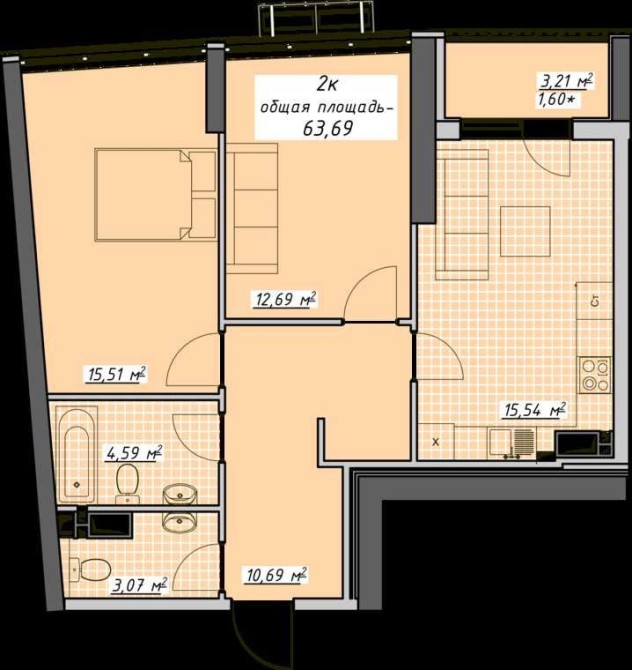 • Общая площадь 64 м2