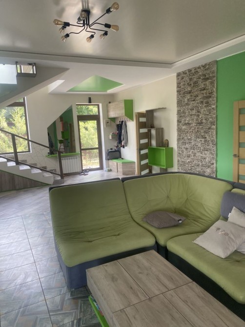 Продається будинок в Яремче, район Дора, загальною площею 240 м², перший поверх площею 100 м², площа земельної ділянки 0.23 га. Побудований в 2014 році, від центральної дороги до будинку 30 метрів. На території подвір'я розташовані будинок, літня кухня, сарай, криниця і септик. Бетонний фундамент у будинку кухні і сараю. Перший поверх має стіни з дерева та частково з цегли, другий і третій поверх - дерев'яні. Заведені комунікації: газ, світло, вода. У будинку є твердопаливна піч, газовий двоконтурний котел для гарячої води і опалення, а також вся необхідна побутова техніка. Підлога в будинку дерев'яна. Сходи до будинку з вулиці бетонні, на другий поверх - дерев'яні. Зовні будинок утеплений мінватою та опшитий частково металом, частково дошками. Вікна встановлені металопластикові двокамерні. Перекриття у будинку дерев'яне, покриття даху - металочерепиця. Перший поверх будинку повністю зроблений житловий ремонт, другий і третій мансардний поверх потребують ремонту.