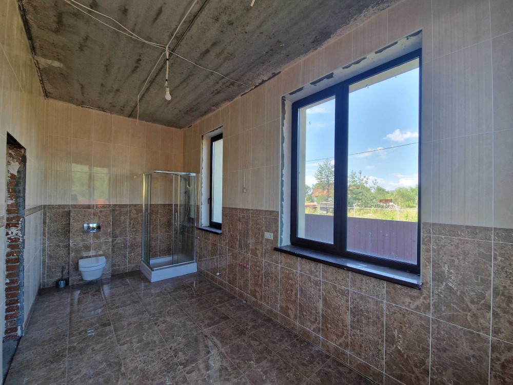 Дом с чистовой отделкой, разведена электрика, на стенах машинная штукатурка, стяжка на полу.