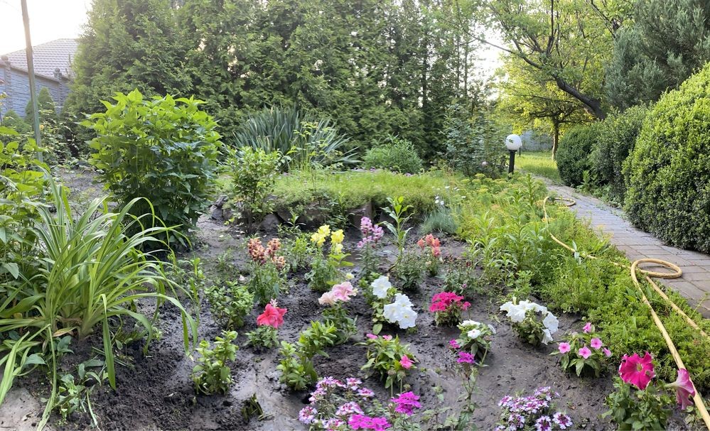Многолетние еловые,фруктовые деревья,кустарники,цветы