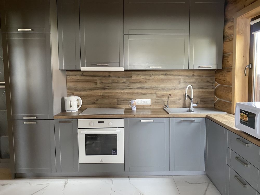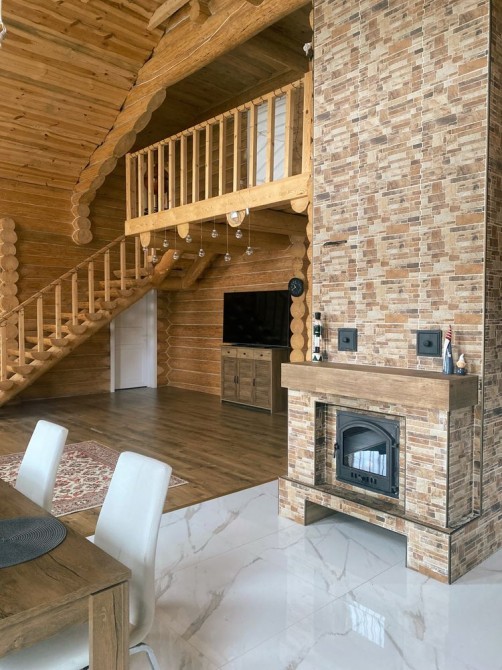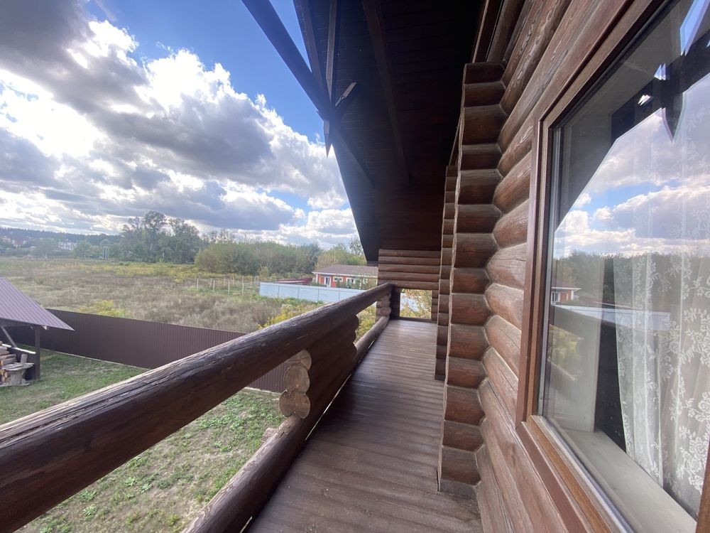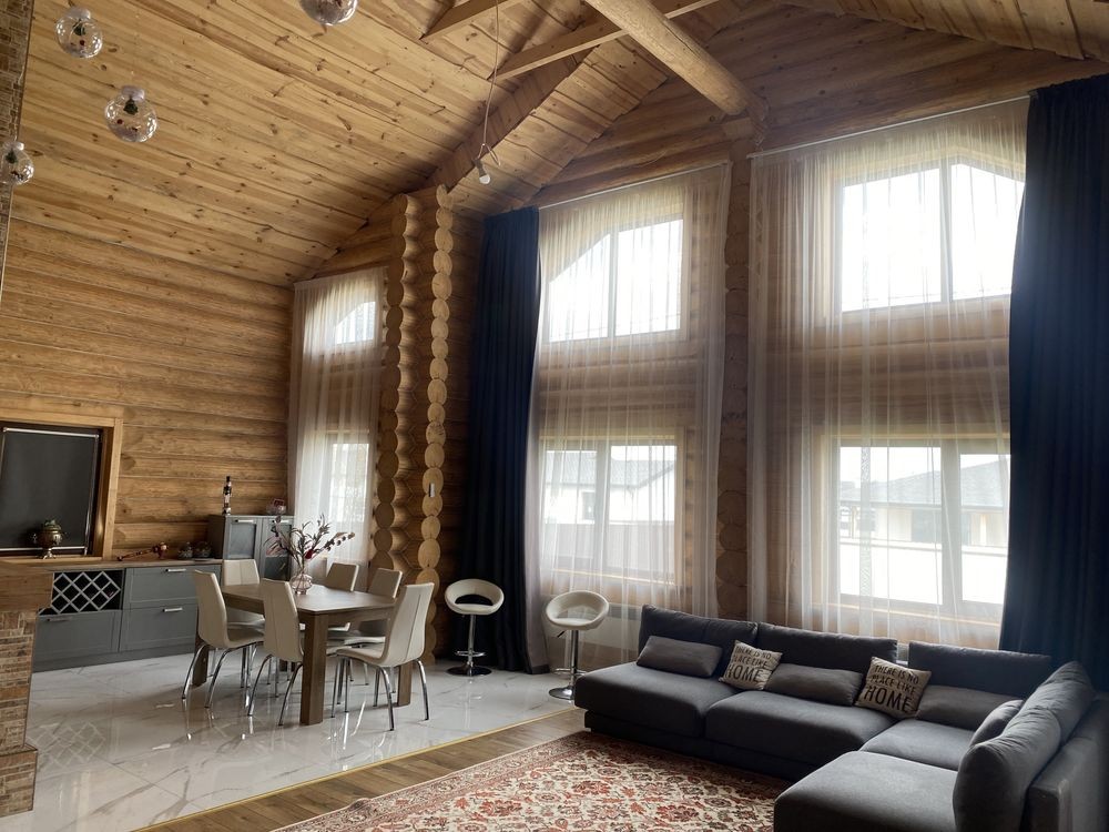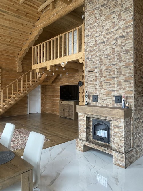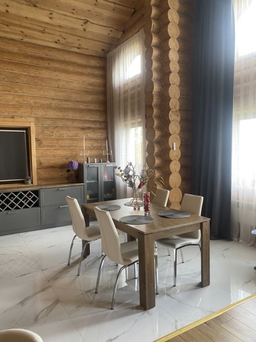 Двоповерховий 5-кімнатний будинок (262 м2) в с.Тарасівка в 10км від Києва по Одесській трасі 1-й поверх: великий хол з каміном сумісний з кухнею, дві спальні кімнати та санвузол з душем, вхід в баню на дровах 2-й поверх: дві спальні кімнати, санвузол з ванною та балкон Будинок повністю облаштований усім необхідним для проживання: - Посуда - Постільна білизна - Робот пилосос - Праска - Сушка - Гладильна доска - Мікрохвильовка - Посудомийна машина - Підігрів підлоги - Бойлери - Обігрівачі - Мангал та все необхідне для нього Опалення: В холі будинку є дровяний камін / піч, який обігріває весь будинок. В пристройці є запас дров на зиму.В будинку 3 бойлери та 5 електричних обігрівачів, а також підігрів підлоги. Комунальні (тільки електрика): При ввімкнених обігрівачах та підігріву підлоги без каміну - ~1500 грн. взимку Є два генератори: на 3.5 кВт та на 5.5 кВт В будинку встановлена сигналізація ШЕРИФ, камери відеонагляду можна переглядати з телефону У вартість оренди входить замовлення клінінгової компанії один раз на місяць. Будинок побудований з відбірного дикого зрубу товщиною 40 см. Є скважина з фільтром, а також встановлений окремий фільтр для питної води. Від Києва до будинку всюди прокладений асфальт, зручно добиратись на автомобілі. Поряд є заправки OKKO. Є також навіс біля будинку для 3-х машин. На території є зарядка для електрокара. В 100 метрах від будинку знаходиться КМ «Green Hills», де є салон краси, спорт зал, спа, бассейн, минимаркет, садочок, школи. Також поряд декілька дитячих садкіів. В 10-ти хвилинах на машині знаходиться великий NOVUS