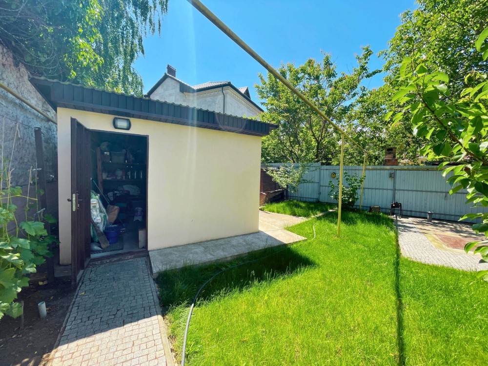 На придомовой территории есть капитальное сооружение для хозяйственных нужд, подвал, сохраняющий прохладу, и над которым обустроена площадка под беседку с подведенными водой и светом.
