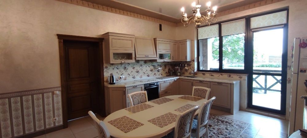 Площадь 500 м2 с земельным участком 10 соток. Ремонт по авторскому дизайну с применением натуральных высококачественных материалов и полностью укомплектован качественной мебелью и бытовой техникой.