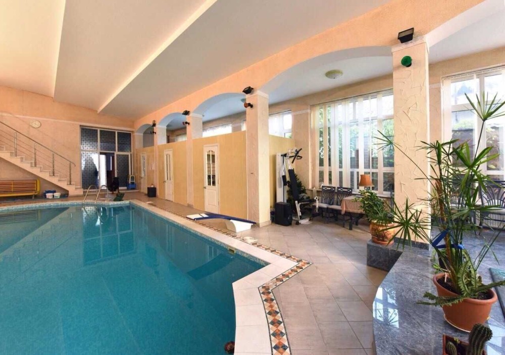Просторная беседка и оборудованная летняя кухня, позволяет проводить время на воздухе в теплое время года! Во дворе дома есть гараж на 2 автомобиля и 3-х этажный летний домик для гостей, со своей кухней и санузлом! Для комфортного отдыха часть двора занимает СПА-комплекс: бассейн, джакузи , солярий , массажные кабинеты.