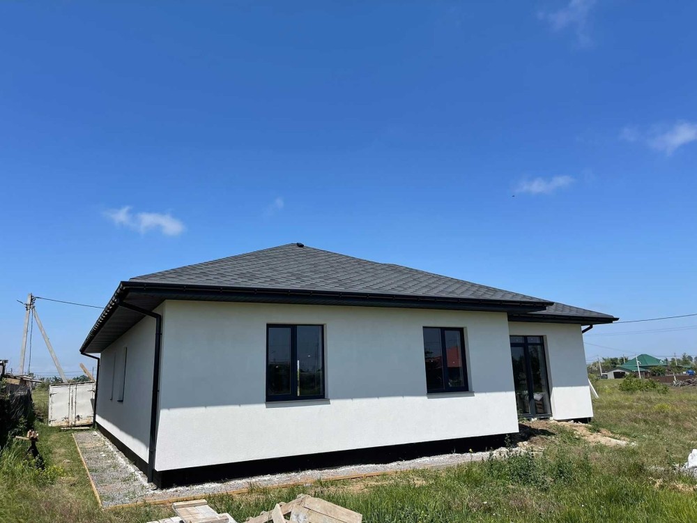В продаже новый , качественный одноэтажный дом, общей площадью 173 м2, огромный гараж на два авто, расположен на 10 сотках земли, по периметру построен забор, выполненные все фасадные работы , заведены свет, вода, (газ по улице ), рядом детская площадка, возможно продажа с ремонтом за дополнительную оплату, за более подробной информацией обращайтесь по телефону, оперативный показ .Подходит по программе