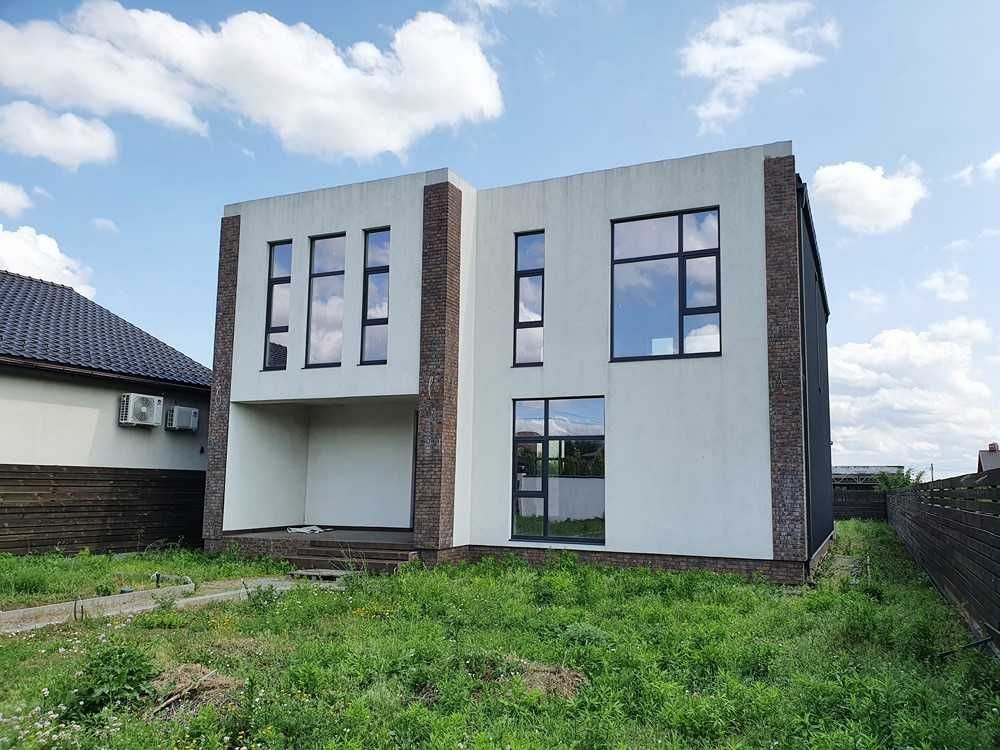 235м.кв. 2-х этажный, в стиле Хайтек, стены газобетон, перекрытия железобетонные плиты, панорамные метало пластиковые окна, внутри состояние после строителей, по фасаду будет все завершено с покраской, свободная планировка, большая просторная терраса на заднем дворе,