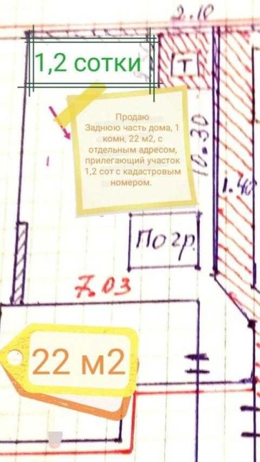 К дому относится участок земли 1, 2 сотки,.