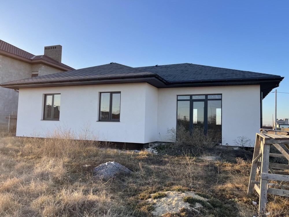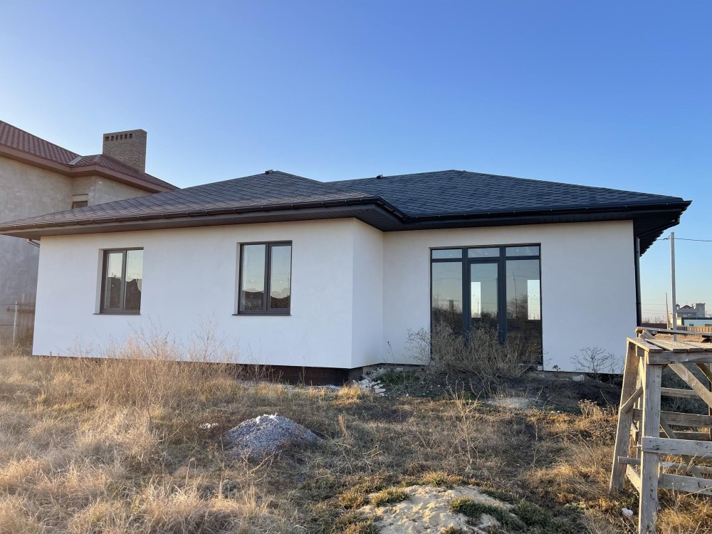 Дом площадью 150 кв.м., расположен на 10 сотках земли. В доме три спальни, кухня гостиная, два санузла, топочная, гараж на два автомобиля.