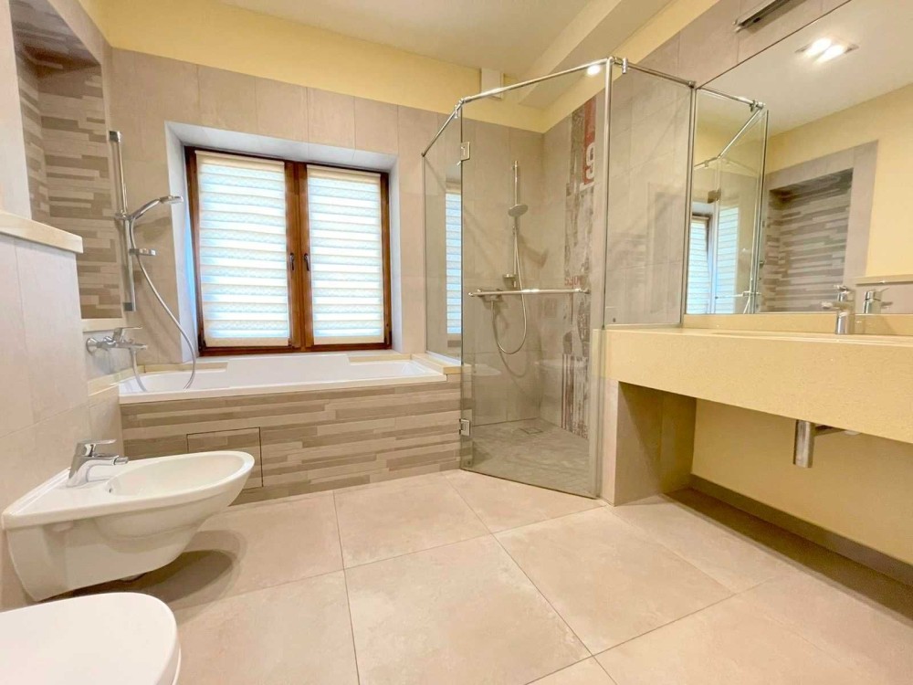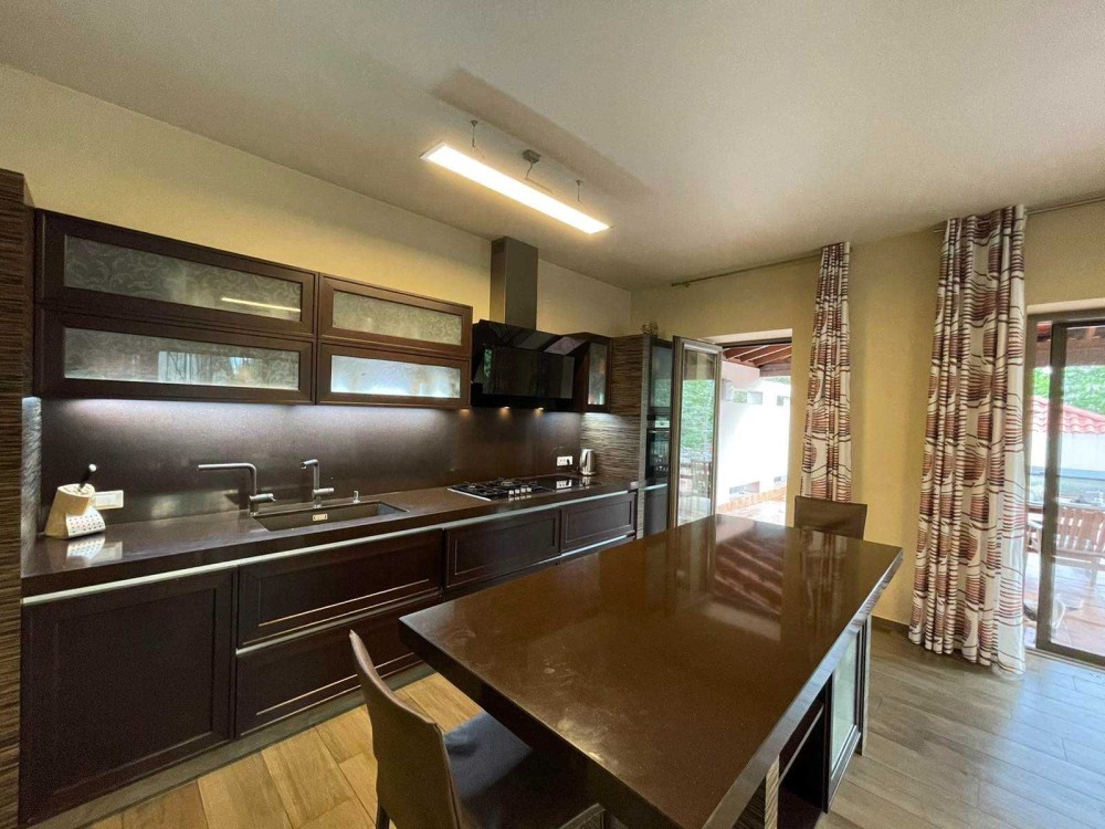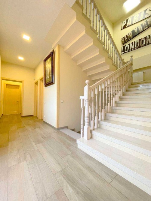 2 эт-две мастер спальни с своими санузлами, гардеробными и двумя террасами с видом на березовую рощу, которая находиться во дворе расположена на 18 сотках Земельного участка. Дом укомплектован всей необходимой мебелью и техникой для проживания. В доме 5 террас, зона барбекю, гараж на 2 Авто, во дворе имеются дополнительное место под Авто. Дом расположен в пешей доступности к Аркадии.
