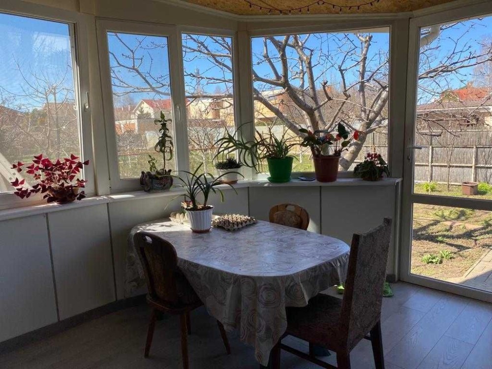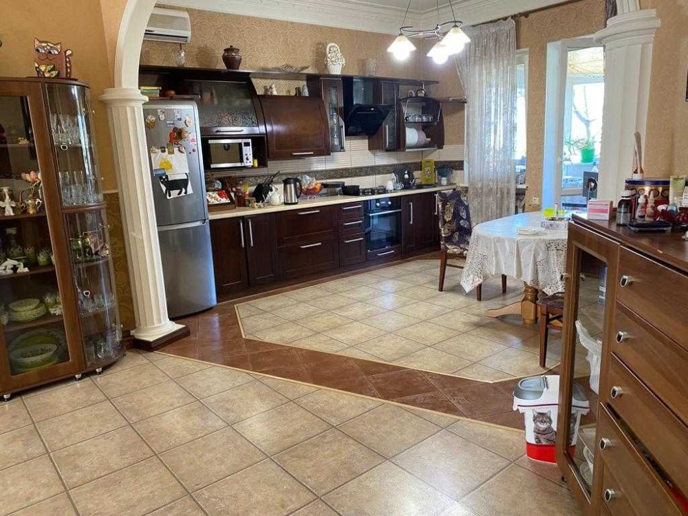 2-х поверховий будинок. S=220 кв.м.з гостьовим будинком. Побудований з ракушняка. Дах – натуральна черепиця. Сходи – дерев'яні.